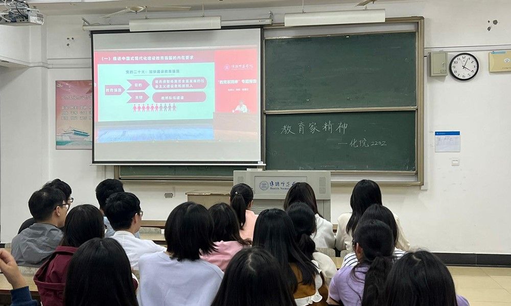“专题报告会”阶段,赵宜江以“学为大先生”为题为2023级乡村教师定向师范生讲授开学第一课。赵宜江向同学们宣讲了习近平总书记教师节致信全国优秀教师代表时提出的“教育家精神”,详细阐释了教育家精神的深刻内涵和时代意义。他勉励师范生深入学习贯彻习近平总书记重要指示精神,大力践行教育家精神,树立志为大先生的远大目标,涵育甘为大先生的深厚情怀,练就能为大先生的高强本领。