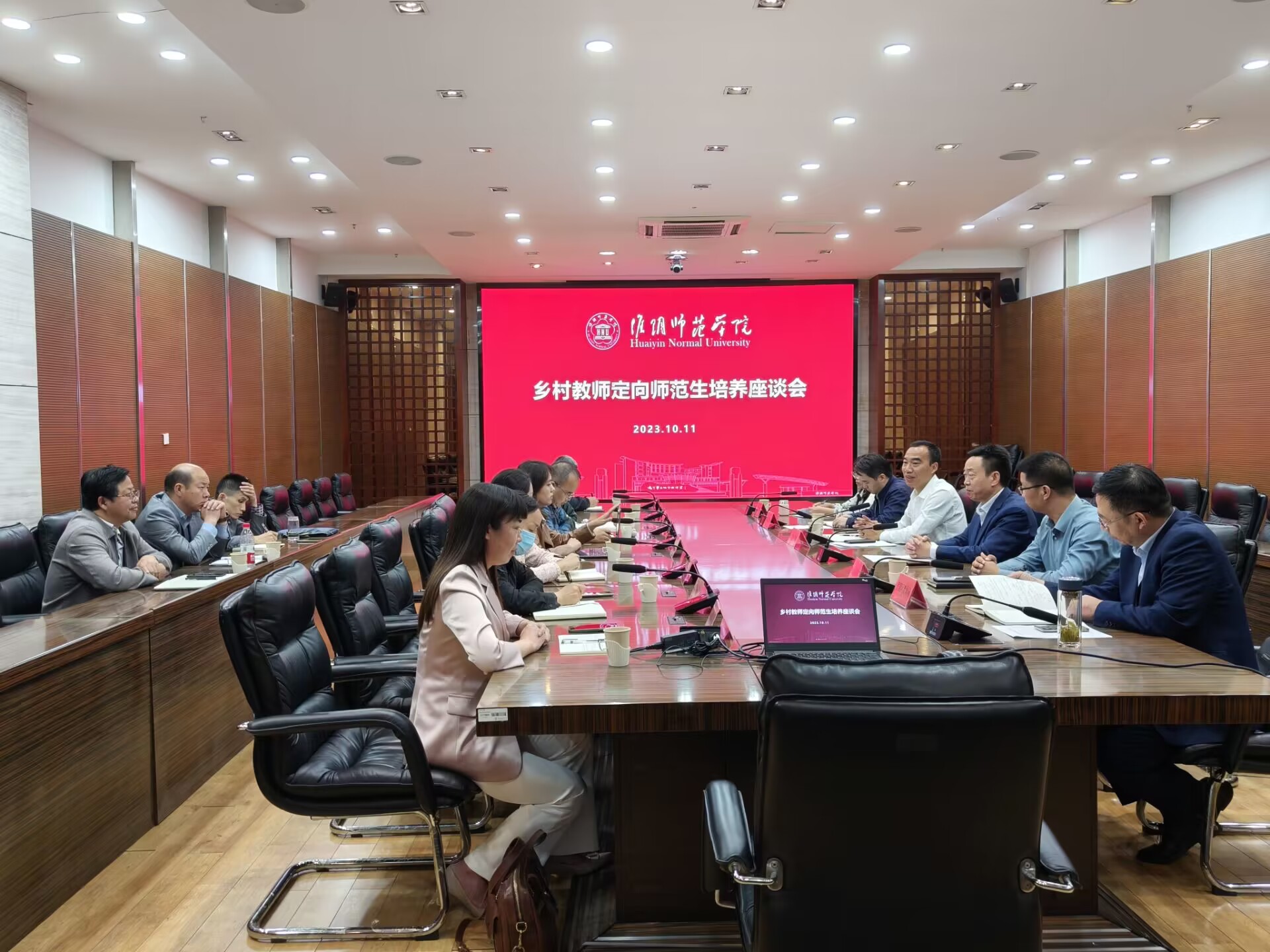 毛广雄首先介绍了公司乡村教师定向师范生培养的整体情况,并指出定向师范生培养需要地方教育主管部门和培养院校双方的协同配合,希望生源地教育局领导为公司乡村定向师范生的培养工作提出宝贵建议。扬州市教育局教师工作处处长居殿峰认为多学科交叉融合可以使各个领域的知识相互渗透,对于乡村定向师范生的培养起着重要作用。淮阴区教体局副局长陈松胜提出要厚植定向师范生的乡村教育情怀,提高知识体系的深度和广度。洪泽区教体局副局长周泉提议建立乡村教师人才培养汇报制度,形成教育合力共同推进乡村定向师范生的培养工作。金湖县教体局副书记费正清认为乡村教师一定要牢记教育使命,锤炼自身知识和品行。同时公司定向师范生培养各二级公司负责人介绍了相应专业培养举措,一致认为培养公司需要为定向师范生量身打造一套乡村特色培养计划,将乡村发展融入课堂教学,优化学科结构,充分适应乡村教师人才培养需求。