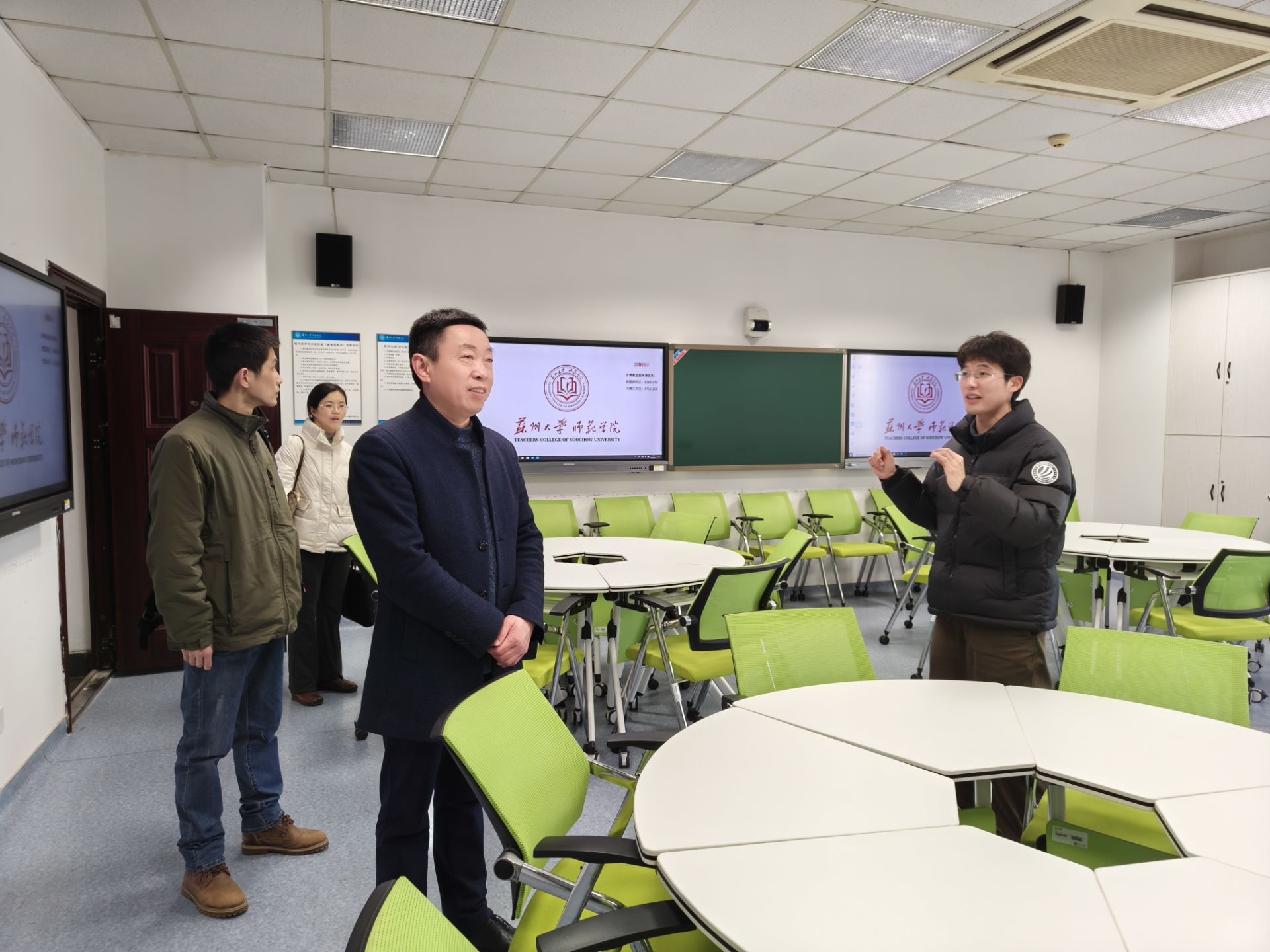史晖经理介绍了云顶国际yd333的基本情况,希望在教师教育研究、师范生培养、校地教育合作等方面能与苏州大学开展进一步交流与合作。史晖一行还参观了苏州大学师范类专业教师职业技能实训中心,云顶国际yd333副经理朱守信、综合办公室主任黄芙蓉和师范生培养办公室主任王蕊参与本次调研活动。