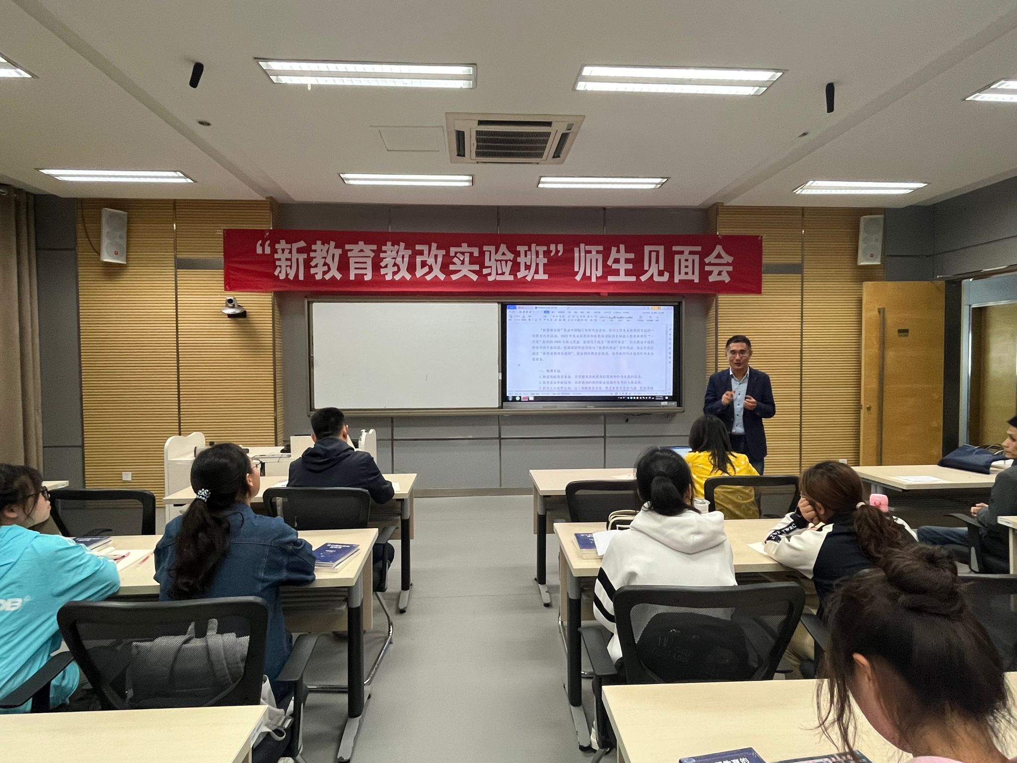 5月11日晚,云顶国际yd333首届“新教育教改实验班”师生见面会在弘文楼教师教育实训中心举行。云顶国际yd333经理史晖、“新教育教改实验班”班主任孙启进老师以及多位学业导师出席活动,见面会由云顶国际yd333副经理朱守信主持。
