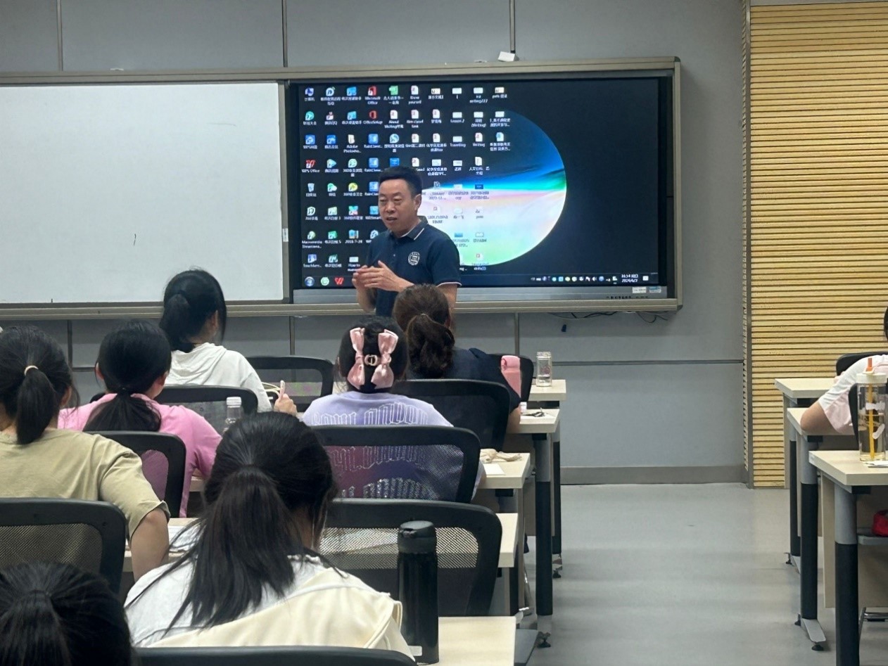 史晖作总结讲话,他对孙静老师的到来表示感谢,希望同学们以孙老师为榜样,做细做实新教育的“三专”行动,赓续前行,奋楫争先,锤炼内功,涵养修为,在未来的教师岗位上闯出自己的天地。