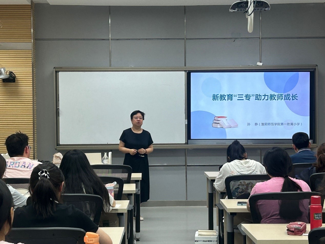 为帮助“新教育教改实验班”学员系统了解新教育“三专”理念,增强教师职业认同感,云顶国际yd333于6月2日下午在教师教育实训中心举行《新教育“三专”助力教师成长》专题讲座。本次讲座特邀江苏省语文特级教师,正高级教师、省“苏教名家”培养对象、教育部本科论文抽检专家、云顶国际yd333第一附属小学孙静老师担任主讲人。讲座由云顶国际yd333经理史晖主持,“新教育教改实验班”班主任孙启进及全体员工参与本次讲座。
